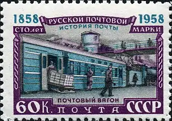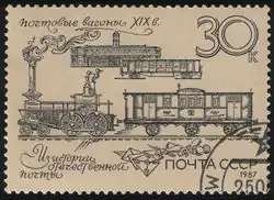 Почтовые вагоны были организованы на железных дорогах Российской империи с 1861 года — для передвижения почты и перемещения почтовых чиновников и почтальонов[19]. Служащие почтовых вагонов останавливавшихся на станции поездов забирали почту из почтового ящика и сортировали её по пути следования поезда. К 1 января 1904 года в Российской империи имелось 590 почтовых вагонов[20].