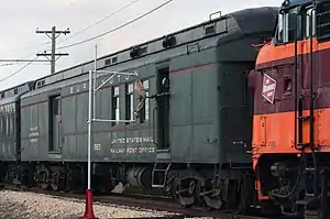 Специально построенные почтовые вагоны появились в США на той же линии через несколько недель после начала доставки почты железной дорогой. Цель заключалась в сортировке и отделении почты для передачи на западный дилижанс, который отправлялся вскоре после прибытия поезда в Сент-Джозеф. Эта почта работала около года[25]. Первый постоянный обслуживаемый почтовыми вагонами маршрут был открыт 28 августа 1864 года между Чикаго (штат Иллинойс) и Клинтон (Айова; англ. Clinton, Iowa)[4][26]. Этот маршрут отличался от маршрута 1862 года тем, что почта сортировалась и принималась от каждого почтового отделения на пути следования, а также от крупных почтовых отделений за пределами конечных пунктов маршрута.