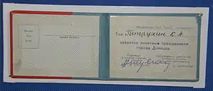 - Почётные граждане Донецка. Информация на официальном сайте городского головы и городского совета г. Донецка
