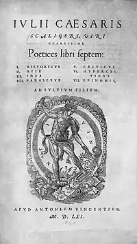 - Scaliger, Jules César. Poetices libri septem : ad Sylvium filium (лат.) ?. Bibliothèque nationale de France. Дата обращения: 13 августа 2011. Архивировано 15 мая 2012 года. (1-е издание)