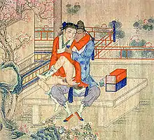 Считается, что император Чжэнде из династии Мин (1368—1644) имел гомосексуальные отношения с мусульманским лидером из Хами по имени Сайид Хусайн. Помимо отношений с мужчинами, у императора Чжэнде было много отношений с женщинами. Он добивался дочерей многих своих чиновников. Считается, что у императора Тяньци было два частных дворца, один для его любовниц-женщин и один для любовников-мужчин[8]. В эту эпоху лесбийские сексуальные практики стали соответствовать быстро растущей тенденции «сапфизма», которые создавались все во имя удовольствия. Это включало, но не ограничивалось актами фроттажа, куннилингуса и взаимной мастурбации[8].