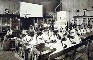 Так как получение среднего образования для женщин в передовых кругах общества стало необходимой нормой, по указу императора Александра II в разных городах была создана единая система женских общеобразовательных училищ с семилетним курсом обучения; такие заведения в 1862 году стали называться женскими гимназиями[60]. Против гимназий выступали видные руководители народного просвещения[60].