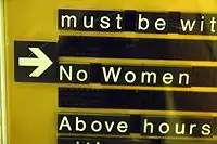 Кроме того, половая сегрегация существует и в общественных местах, которые дают основную прерогативу мужчинам, женщины же должны находиться в так называемых специальных женских отделах, куда мужчины не имеют права входить. Таким образом, женщина сумеет работать и минимализировать контакт с незнакомыми мужчинами. Общественный транспорт, пляжи, парки развлечений также разделены. Иногда школьники двух полов учатся в разное время, чтобы не пересекаться. Нарушения принципов половой сегрегации называется «халва», которая может приравниваться к преступлению, особенно со стороны женщины[51].