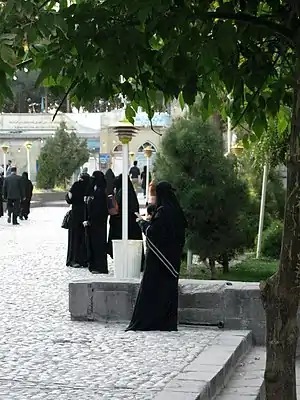 Чтобы мужчина не-муж/родственник не соблазнялся женщиной, она, согласно шариату, обязана в общественном месте покрывать все части тела, кроме овала лица, кистей и стоп. В некоторых провинциях женщин обязывают закрывать лицо, кроме глаз, и оставлять открытыми только руки. Большинство саудовских женщин носят чёрные вуали с никабом. По утверждению историков, обычай покрывать всё тело существовал в арабских регионах до возникновения ислама, а правила дресс-кода, описанного в Коране, были интерпретированы в соответствии с арабскими племенными традициями, где женщины, обладающие высоким клановым статусом, обязывались полностью покрываться[44][45]. Правильная одежда должна быть толстой, непрозрачной, свободной и не должна подчёркивать формы тела женщины. Одежда не должна быть похожей на мужскую или немусульманскую. Строгость дресс-кода отличается в разных регионах. В Джидде многие женщины ходят с открытыми лицами, в Эр-Рияде такие фактически отсутствуют. Некоторые дизайнерские магазины продают абайи с более широкими рукавами и обтягивающей тканью. С 2011 года религиозная полиция стала требовать от женщин закрывать также и глаза, ссылаясь на то, что порой они могут быть слишком «сексуальными»[46]. Законы запрещают изменять цвет абайи с чёрного, однако можно в некоторых местах украшать её блёстками или узорами. По словам дизайнера, украшения могут отражать вкус и личность женщины[11][16][47]. С середины десятых годов XXI века, некоторые женщины в крупных городах стали надевать абайю не частично или полностью не чёрного цвета, за что по прежнему могут получить выговор от шариатской полиции[43].