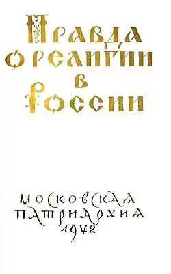 - Русская Православная Церковь и Великая Отечественная война. Сборник церковных документов. М.: изд. Московской Патриархии, 1943.