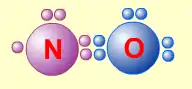 - В данном случае сумма валентных электронов атома азота (5) и кислорода (6) равна 11, поэтому в этой молекуле атом кислорода достигает восьмиэлектронной оболочки, а атом азота — нет. В данном случае изначально невозможно достижение обоими атомами восьмиэлектронной оболочки. Стремление атома азота заполнить свою электронную оболочку объясняет химическую реакционную способность этой молекулы.