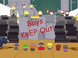 Сражение между девочками и мальчиками приводит к нескольким жертвам, (включая Кенни, конечно), и родители думают, что во всем виноваты дети. Но мисс Заглотник берет полную ответственность за конфликт и приносит извинения девочкам за дезинформацию.