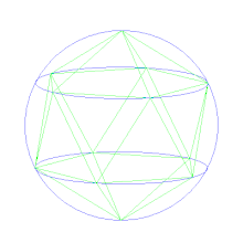 - Десять вершин икосаэдра лежат в двух параллельных плоскостях, образуя в них два правильных пятиугольника, а остальные две — противоположны друг другу и лежат на двух концах диаметра описанной сферы, перпендикулярного этим плоскостям. Расстояние между симметричными парами вышеупомянутых плоскостей, образованных пятью вершинами равно радиусу круга описываемого вокруг этого пятиугольника. /данное правило позволяет довольно легко создать 3D модель правильного икосаэдра/.