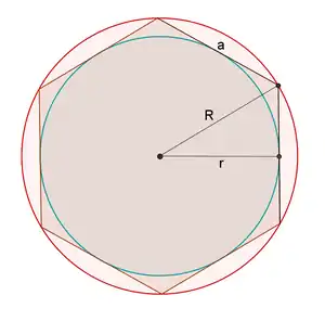 Пусть — радиус описанной вокруг правильного многоугольника окружности, тогда радиус вписанной окружности равен