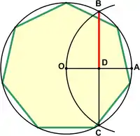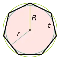 Пусть — сторона семиугольника, — радиус описанной окружности, — радиус вписанной окружности.