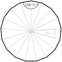 Правильный семнадцатиугольник можно построить при помощи циркуля и линейки, что было доказано Гауссом в монографии «Арифметические исследования» (1796 год). Им же найдено значение косинуса центрального угла семнадцатиугольника: