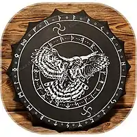 Шаманский этнический 14-угольный бубен, выполненный в германской традиции.[6].