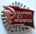 1974 | Постановление ЦК КПСС, Совмина СССР, ВЦСПС, ЦК ВЛКСМ от 27 февраля 1974 года «Об утверждении образца единого общесоюзного знака „Ударник девятой пятилетки“ и Положения о нём». | ||
