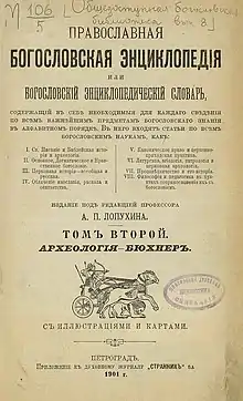 - Харлампович К. В. Православная Богословская энциклопедия. С иллюстрациями и картами. Т. I—V (под редакцией профессора А. П. Лопухина), VI—X (под редакцией профессора Н. Н. Глубоковского), 1900–1904 гг. Петроград; 1905–1909 гг. Петербург. Бесплатное приложение к духовному журналу «Странник» // Учёные записки Императорского Казанского Университета Кн. 6 и 7. — Казань: Казанский Императорский университет, 1910. — С. 1—44 (3-я пагинация) и отд. оттиск.
