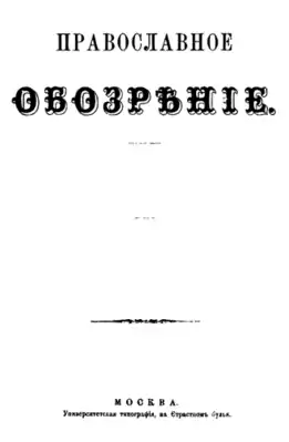 - Православное Обозрение // Энциклопедический словарь Брокгауза и Ефрона : в 86 т. (82 т. и 4 доп.). — СПб., 1890—1907.