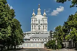 Одно из самых известных произведений Б. Растрелли и всего русского барокко. Основан императрицей Елизаветой Петровной, решившей провести последние годы жизни в тишине монастыря. Собор был заложен 30 октября 1748 года и уже в 1757 году был вчерне готов, но из-за Семилетней войны остался неотделанным. Лишь через несколько десятилетий архитектор В. П. Стасов окончил работы, после которых собор был освящен 20 июля 1835 года.