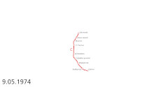 - 9.05.1974: линия «С», участок I.C «Florenc» — «Kačerov» (6,6 км, 9 станций). Участок длиной 485 м на перегоне между станциями «I.P.Pavlova» и «Vyšehrad» надземный, находится внутри Нусельского моста.