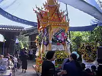 Сама по себе смерть не рассматривается тайцами в качестве горя от потери близкого человека и считается естественным переходом из одного состояния бытия в другое, сопряженным с избавлением от страданий в этой жизни и приобретением состояния «сабай-сабай», то есть полного комфорта. В каком-то определённом смысле за усопшего можно даже порадоваться — он не испытывает физических мучений, он прошёл очередной цикл своей кармы и вступил на новый круг существования своей души. Его провожают с почестями, и хранят о нём светлую память. Время прощания (три, пять или семь дней) зависит от дня недели, когда умер человек. Во-первых, нечетные числа считаются в Таиланде счастливыми, поэтому надо выдержать именно этот порядок времени прощания и совершения ритуалов. Во-вторых, нельзя хоронить, то есть кремировать по четвергам, субботам и понедельникам, поскольку каждый четверг — праздник, День Учителя, а суббота и понедельник — законные выходные у служащих похоронных служб. Из этих соображений высчитывается количество дней прощания с покойным. В эти дни в дом приглашают четырёх монахов для совершения прощальных обрядов. Цифра «4» знаменует смерть, поэтому данное количество монахов возможно увидеть в доме только в одном случае. Приглашение монахов — это тхам бун, совершение благих поступков и получение заслуг для своей кармы, то есть дело святое.