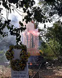 В последний день похоронных ритуалов, после обильных подаяний монахам, после красивой кремации с фейерверками и петардами, все родственники, близкие, знакомые и соседи усопшего поминают его обильным застольем. Поздней ночью праздник смерти подходит к концу.