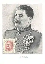 К прижизненным коммеморативным выпускам, посвящённым персонально руководителю СССР, в частности, относятся марки 1949 года, выпущенные Румынией (Mi #1195; Sc #718) и Чехословакией (Sc #400) в честь 70-летия Сталина. При этом чехословацкая марка также встречается на картмаксимуме.