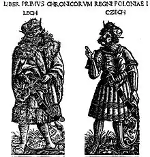 По польским версиям легенды, записанной в XIV веке, Чех был младшим из трёх братьев. Старшим же был Лех, а средним — Рус.