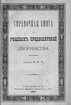 Обложка книги «Справочная книга для уездных Предводителей дворянства». 1887 год