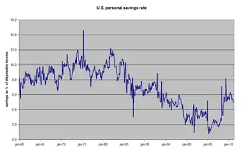 Например, в США на протяжении всего периода статистических наблюдений норма личных сбережений менялась в широких пределах: от 14 до 3,5%. Наиболее низкие показатели наблюдались в начале 21 века. Существует точка зрения, что сильное влияние на склонность к потреблению оказывал эффект богатства. Американские домохозяйства владели большими финансовыми активами и недвижимостью, которая быстро росла в цене. Это создавало ощущение благополучия и позволяло занимать и тратить больше располагаемого дохода[3].