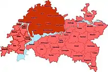 На территории Восточного Предкамья расположены следующие административные районы Татарстана:
