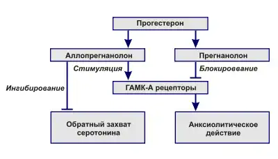 В настоящее время имеются работы, которые доказывают, что гормональный фон женщины при предменструальном синдроме не изменяется (например, труд Оеттеля 1999 года). В связи с этим, можно предположить, что предменструальный синдром развивается не только от дефицита прогестерона, но и от особенностей его метаболизма в ЦНС. При нормальном метаболизме прогестерон способен образовывать аллопрегнанолон, который стимулирует ГАМК-А рецепторы, а также повышает активность хлоридных ионных канальцев нейронных мембран, обеспечивая седативный эффект. При нарушениях метаболизма прогестерона в ЦНС гормон образует прегнанолон, который является антагонистом А- и В-ГАМК рецепторов, наличие которых может объяснить клинические проявления ПМС. Также прегнаналон может вызвать депрессию, часто встречающуюся при предменструальном синдроме. Помимо этого, в гормональной теории возникновения предменструального синдрома рассматриваются изменения содержания андрогенов (таких как тестостерон, андростендион и др.), кортикостероидов, а также гиперпродукция задней и средней долей гипофиза[4].