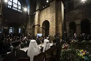 5 января 2019 года в Георгиевском соборе на Фанаре патриарх Константинопольский Варфоломей подписал свидетельство об автокефалии ПЦУ (томос)[112]. Официальная передача томоса предстоятелю ПЦУ митрополиту Епифанию состоялась 6 января[113].