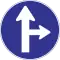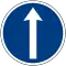 Форма — круглая, фон — синий, рисунки — белые. Предписывают участникам дорожного движения определённые действия, например направление поворотов.