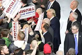 Трамп провел многотысячные митинги во время своей предвыборной кампании[108][109][110][111], Трамп «регулярно привлекает тысячи людей на митинги в Айове, гораздо больше, чем любой из его соперников из Республиканской партии»[109].