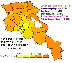 Президентские выборы были проведены впервые в Армении 17 октября 1991 года[1] результатом которых стала победа Левона Тер-Петросяна, который выиграл 83% голосов. Явка составила 70%[2].
