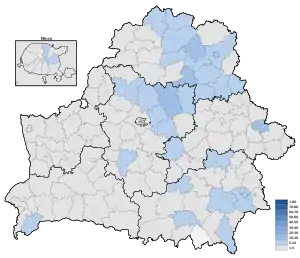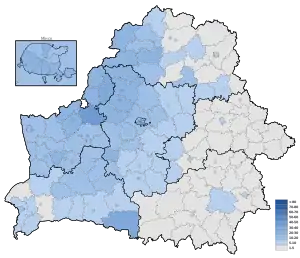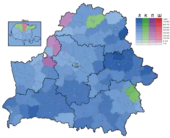 | Могилёвский район | 73.0% | 12.2% | 2.2% | 2.0% | 3.5% | 3.1% |