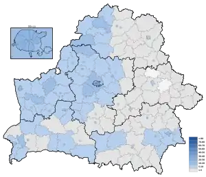 | Кореличский район | 55.0% | 9.6% | 11.9% | 7.0% | 7.9% | 1.9% |