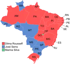 | 1 | Дилма Русеф | 47 631 545 (46,9 %) | 1 | 55 745 867 (56,05 %) |