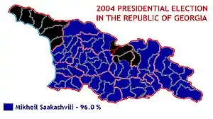 | Результат выборов | Михаил Саакашвили подавляющим большинством голосов избран президентом Грузии на первый срок | ||