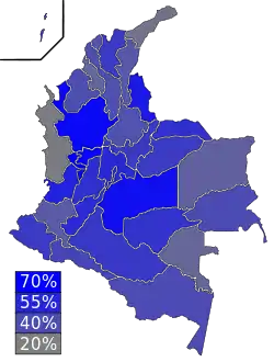Результаты Альваро Урибе по департаментам Колумбии.