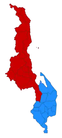 ![]() Результаты президентских выборов по округам. Синим цветом выделены регионы, в которых выиграл Мутарика, красным — Чаквера | |||