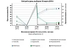 - Выборы президента РФ: результаты экзитпола ВЦИОМ (недоступная ссылка). Пресс-выпуск № 3608 (18 марта 2018). Дата обращения: 18 марта 2018. Архивировано 19 марта 2018 года.