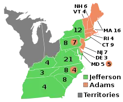 Президентские выборы в США 1800 года называют революцией 1800 года. На этих выборах вице-президент Томас Джефферсон, опередивший президента Джона Адамса, стал третьим президентом США. Выборы привели к власти Демократическо-республиканскую партию и в конечном итоге вызвали распад Федералистской партии.
