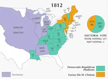 Президентские выборы в США 1812 года проходили на фоне начавшейся англо-американской войны и Наполеоновских войн в Европе. На них кандидат от Демократическо-республиканской партии президент Джеймс Мэдисон был переизбран на второй срок. Он одержал победу над Девиттом Клинтоном, племянником бывшего вице-президента и видного республиканца Джорджа Клинтона, ставшего претендентом от Федералистской партии. Вице-президентом стал Элбридж Герри.