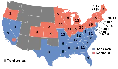 | Кандидат | Джеймс Абрам Гарфилд | Уинфилд Скотт Хэнкок | |