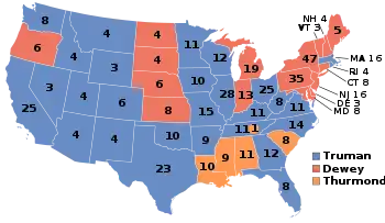 | Кандидат | Гарри Трумэн | Томас Дьюи | Стром Термонд |