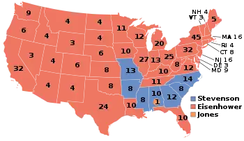 | Эдлай Стивенсон | Демократическая партия | 26 028 028 | 42,0 % | 73 |