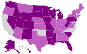 | Штатов | 30 + 2-й округ Мэна | 20 + Округ Колумбия | |