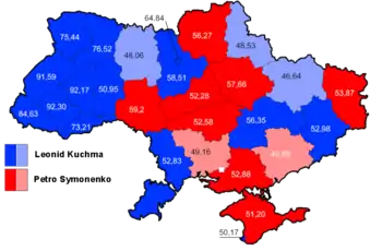 ![]() Результаты второго тура выборов президента Украины 1999 года | |||