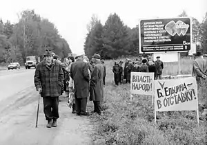 7 декабря Ельцин встретился в Беловежской пуще (Белоруссия) с только что избранным президентом Украины Леонидом Кравчуком и председателем Верховного Совета Республики Беларусь Станиславом Шушкевичем (по словам последнего, встреча предполагалась для обсуждения вопроса поставок нефти и газа[17]). Российская делегация привезла с собой проект нового договора, подготовленный в противовес договору о ССГ. Взяв его за основу, 8 декабря главы трёх государств подписали Беловежское соглашение о создании Содружества Независимых Государств, в преамбуле которого заявлялось, что «Союз ССР как субъект международного права и геополитическая реальность прекращает своё существование»[18]. Соглашение было подписано вопреки результатам референдума о сохранении СССР[19]. Центральная власть во главе с Горбачёвым к этому времени была парализована и уже ничего не могла противопоставить действиям руководителей республик.