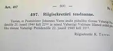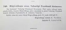 Вступление новоизбранного президента в должность происходит путём принесения перед Рийгикогу следующей присяги: