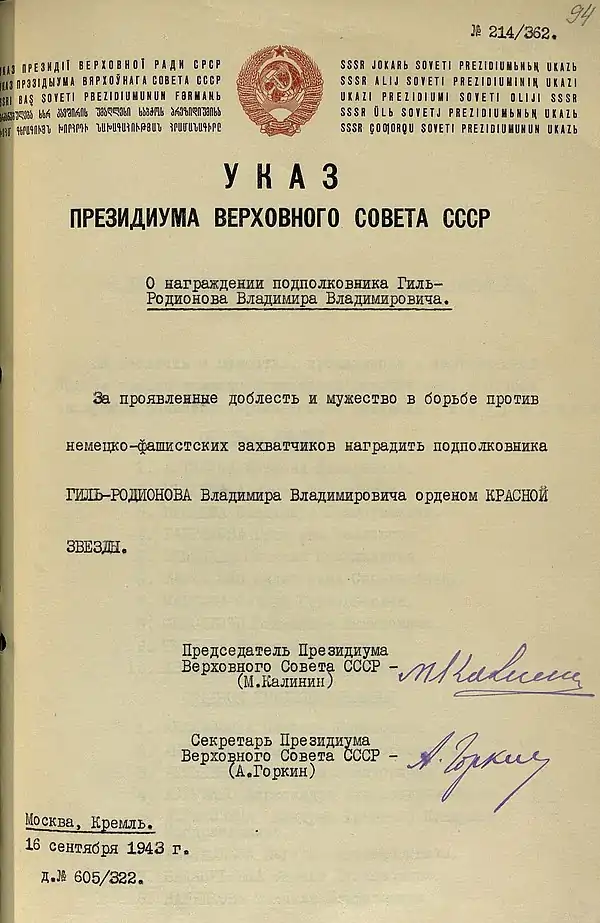 Указ о награждении |